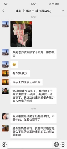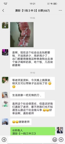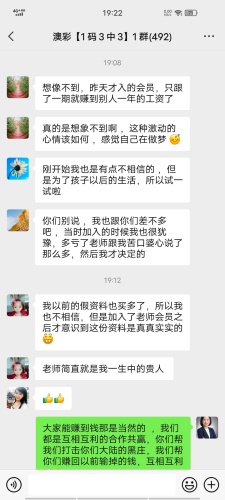 张经理你的资料太准了,昨晚中的钱刚从庄家那里拿回来,没跟你这份资料之前输了十几万了,昨晚总算中回来一点了,以后就跟着你赚钱了。红包少不了你的等会就给你转过去。感谢张经理!